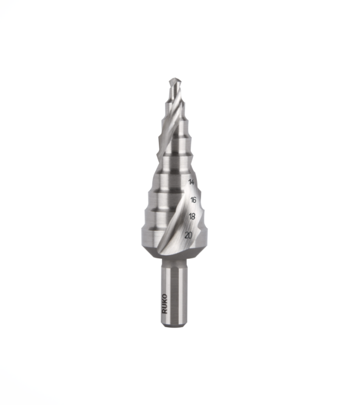Ruko Spirálhornyú lépcsős fúró keresztélköszörüléssel, C forma, csúcsszög 118°, lépcsősszög 90°, 2 vágóéllel, HSS, Ø 6 – 38 mm, 101053
