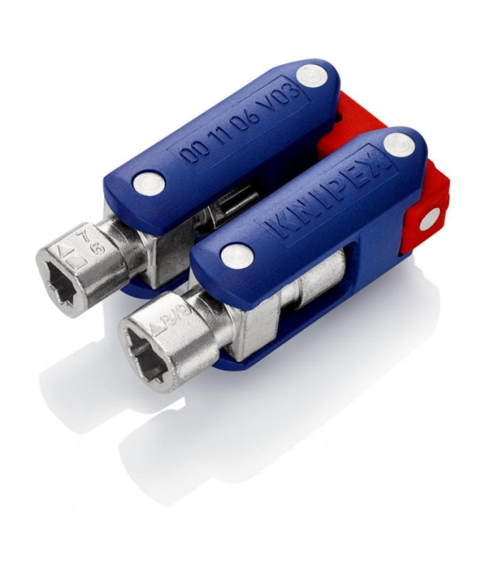 KNIPEX Kapcsolószekrény kulcs, DoubleJoint 4 ágú (vezérlőszekrény kulcs) radiátor légtelenítő kulccsal, 62mm, 00 11 06 V03