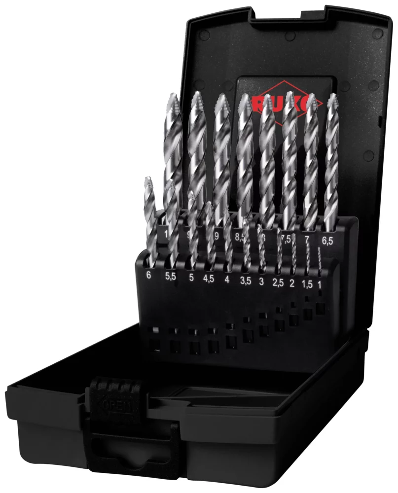 Ruko ULTIMATECUT fúrószár (csigafúró) készlet, Ø1mm-10mm x 0.5mm, HSS-G, DIN338, 19 részes, FLOWSTEP® lépcsőzetes csúccsal, ipari műanyag kazettában, 259214RO