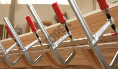 Nemesített csúszó- és rögzítő kar, valamint rugalmas és elasztikus szorító. Ergonomikusan kialakított fa fogantyú.