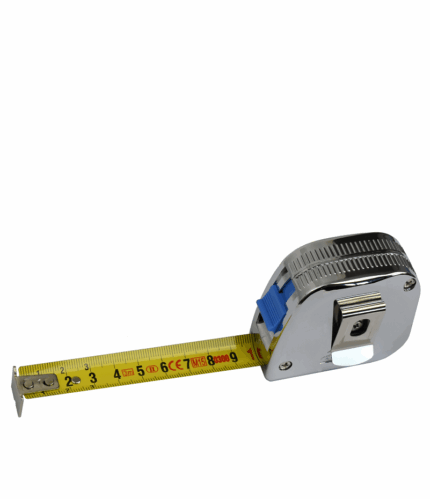 MIB Zseb mérőszalag, EC II., kettes pontossági osztály, lakkozott, acél, sárga, STOP funkcióval, klippel, krómozott házban, 5m / 19mm, 09092002