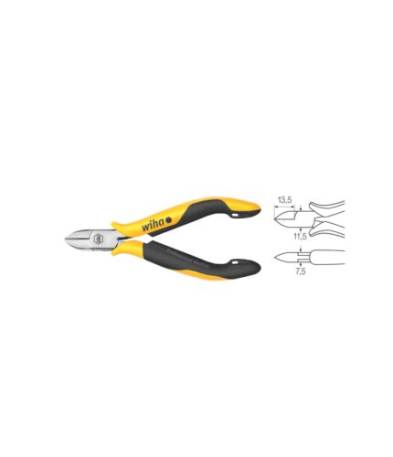 23.957 Ft (18.864 Ft + áfa)Wiha Professional ESD műszerész oldalcsípő (oldalvágó) fogó, 1 mm puha huzalok vágásához, keskeny, hegyes fej kis, 10,5 mm-es metszett éllel, krómozott, IEC 61340-5-1, 115 mm, 26814