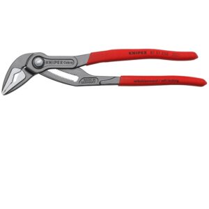 A KNIPEX Cobra® ES 87 51 180 egy 180 mm-es, keskeny fejformájú cső- és vízpumpafogó, amely ideális szűk helyeken végzett munkákhoz. Önzáró kialakítás csöveken, csúszásmentes fogás, kiváló minőségű edzett acél. Tökéletes választás szerelőknek, vízvezeték-szerelőknek és ipari szakembereknek.