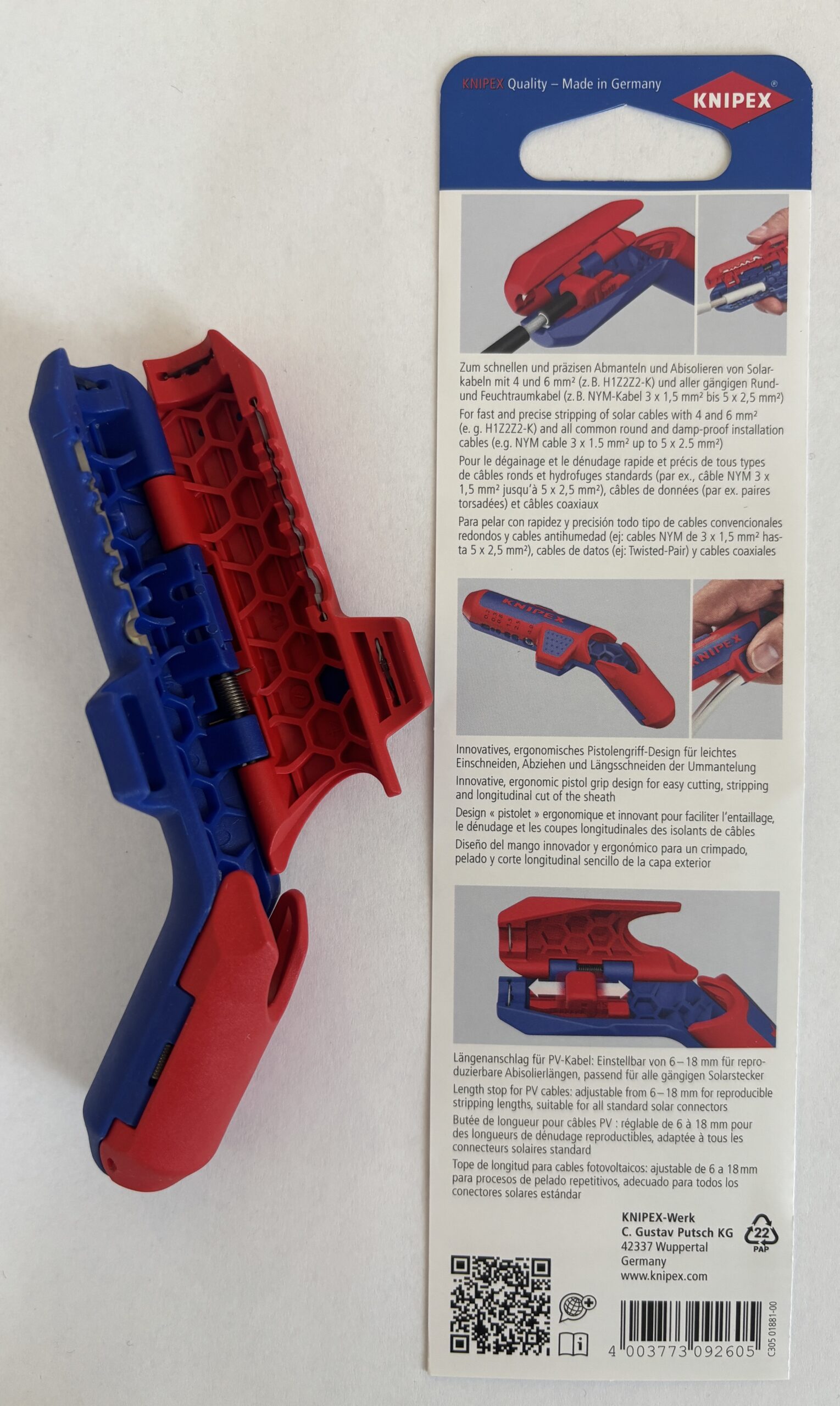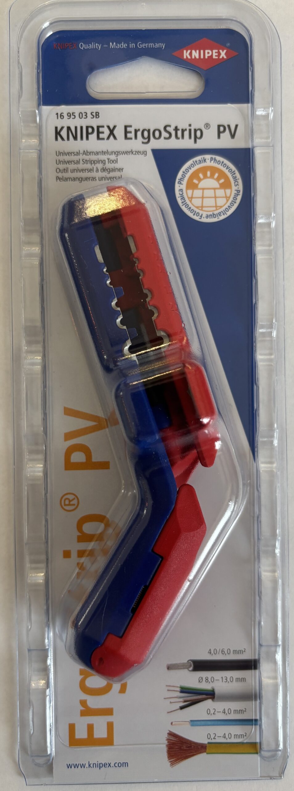 KNIPEX Kábelcsupaszító ErgoStrip®PV, szolár, fotovoltaikus kábelekhez 4-6mm2, 135mm, 16 95 03 SB. Napelemes (fotovoltaikus, photovoltaic) kábelekhez.