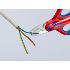 Villanyszerelő olló kábelvágáshoz, drótvágáshoz, blankoláshoz. Külön krimpelési hellyel. Ajánljuk minden villanyszerelő szerszámos táskájába ezt a kiváló minőségű kábelvágó ollót!