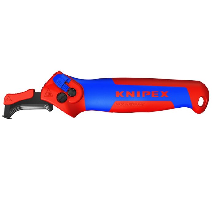 KNIPEX kábelkés, kábelcsupaszító kés, horgos pengével, csúszósaruval, kerek kábelekhez, védő tokkal, 180mm, 98 55