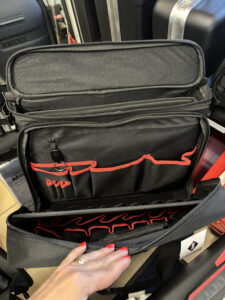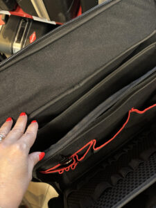 - 1 kivehető szerszámtábla 8 szerszámzsebbel az elülső oldalon és 2 sor elasztikus hurokkal a hátoldalon