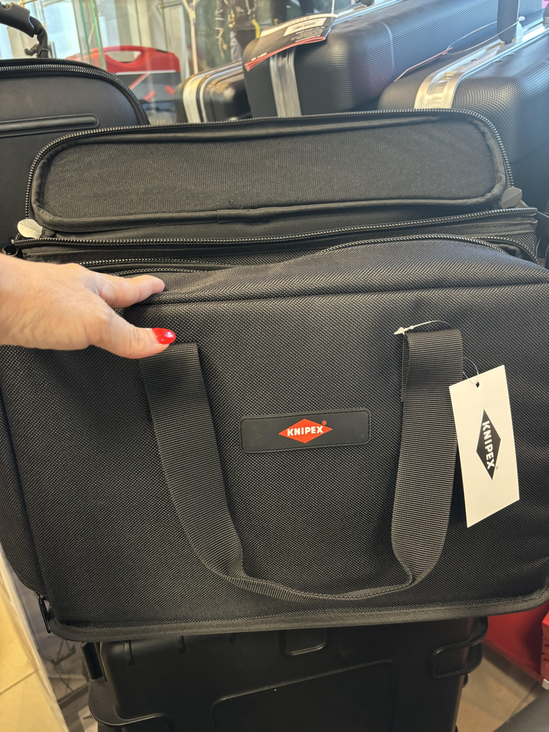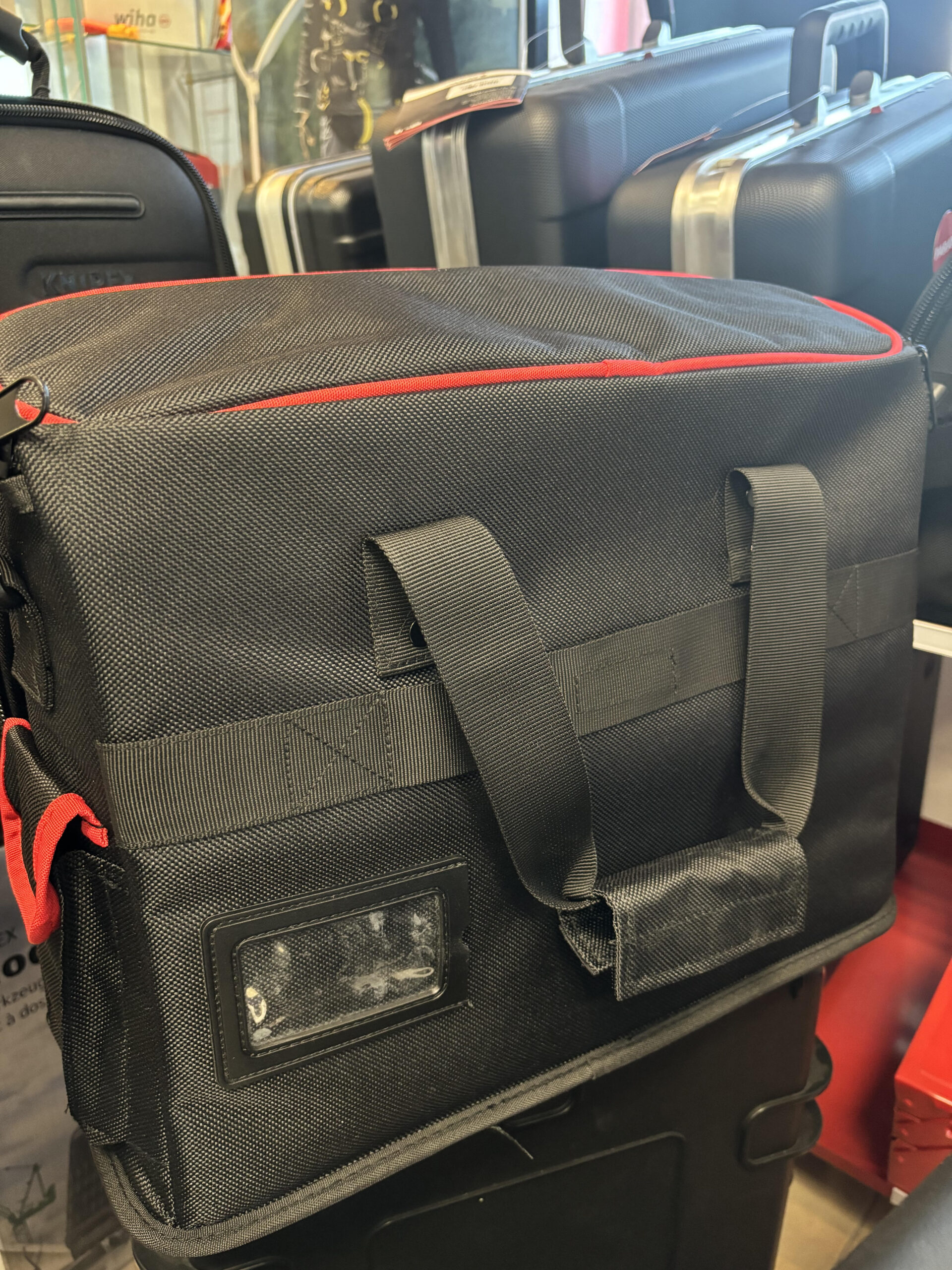 KNIPEX praktikus textil szerszámtáska, vállra akasztható kivitelben. Ez a válltáska segíti a szakemberek előnyös megjelenését, a szerszámok rendezett tárolását egy helyen.