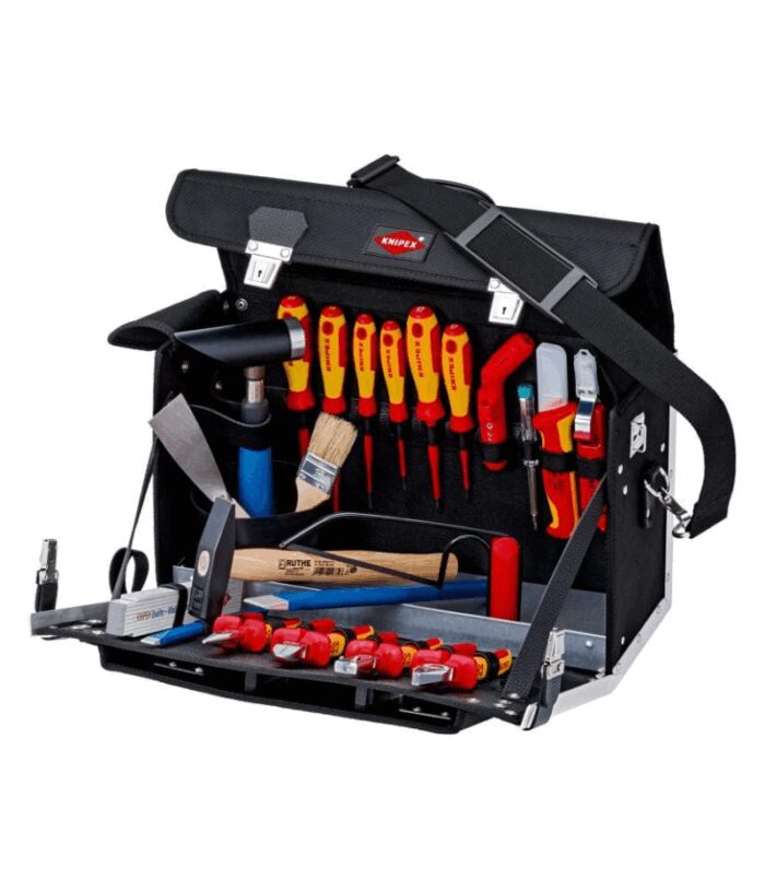 • KNIPEX Villanyszerelő szerszámtáska részben 1000V szigetelt (VDE) szerszámokkal, vállszíjjal, 23 részes