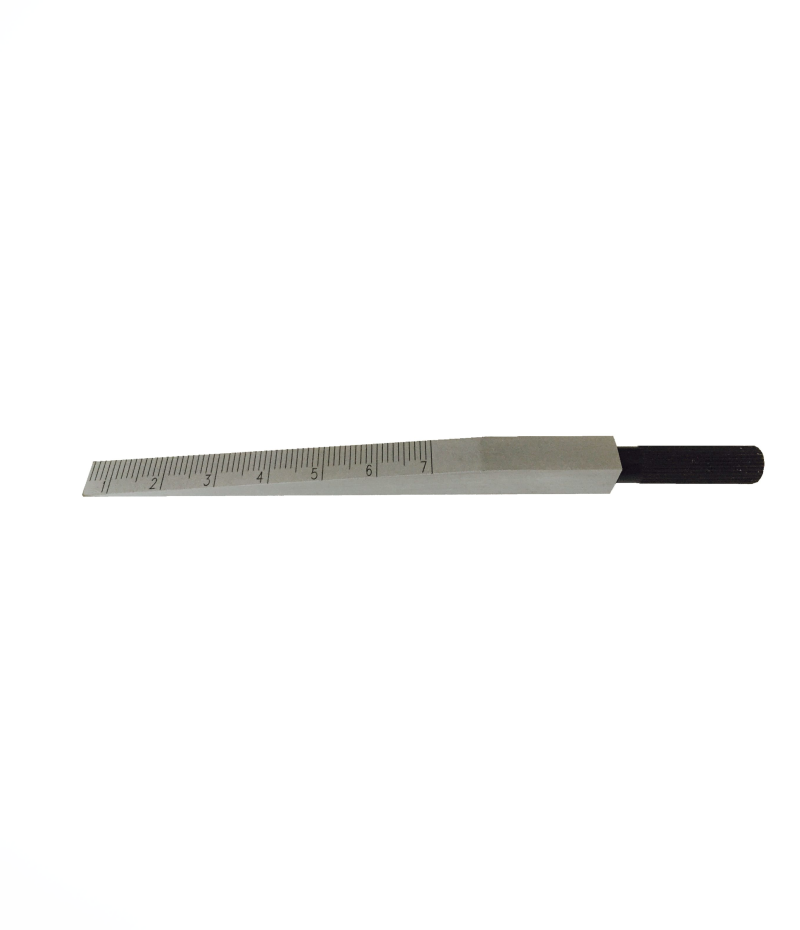 MIB német gyártmányú acél (matt krómozott) mérőék 0,1 mm-es leolvasással. Mérési tartomány 0,5-7.0 mm. Hasíték szélesség méréshez.
