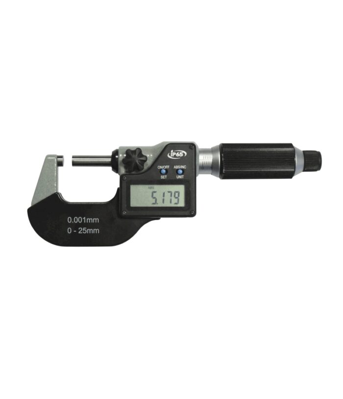 MIB német gyártmányú digitális mikrométer a precíz, pontos mérésekhez. IP65-ös védelemmel ellátva – teljes mértékben védett por ellen ÉS kisnyomású vízsugár ellen. DIN863-as szabvány szerint gyártva. ABS funkcióval, mm/inch mérési lehetőséggel. Keményfém mérőfelületek. A mérőorsó átmérője 6.5 mm. Leolvasása 0.001 mm. 2 mm-es menetemelkedéssel. Racsnival. 25 mm-es beállítóval. Dobozban szállítva.