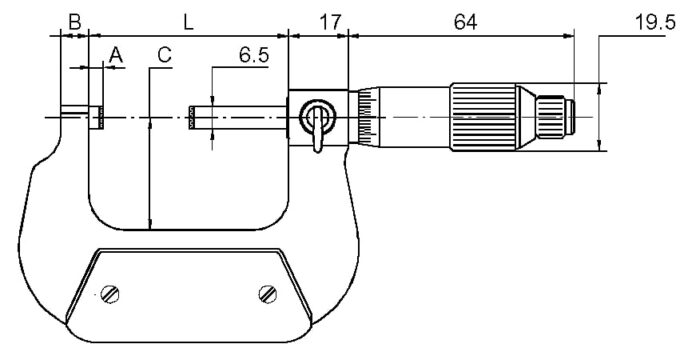 Külső mikrométer DIN863-as szabvány szerint gyártva. Karbid mérőfelületek, mérődob krómozott. A mérőorsó átmérője 6.5 mm, menetemelkedés 0.5 mm. Leolvasása 0.01 mm. Súrlódásgátló racsnival. Dobozban szállítva.