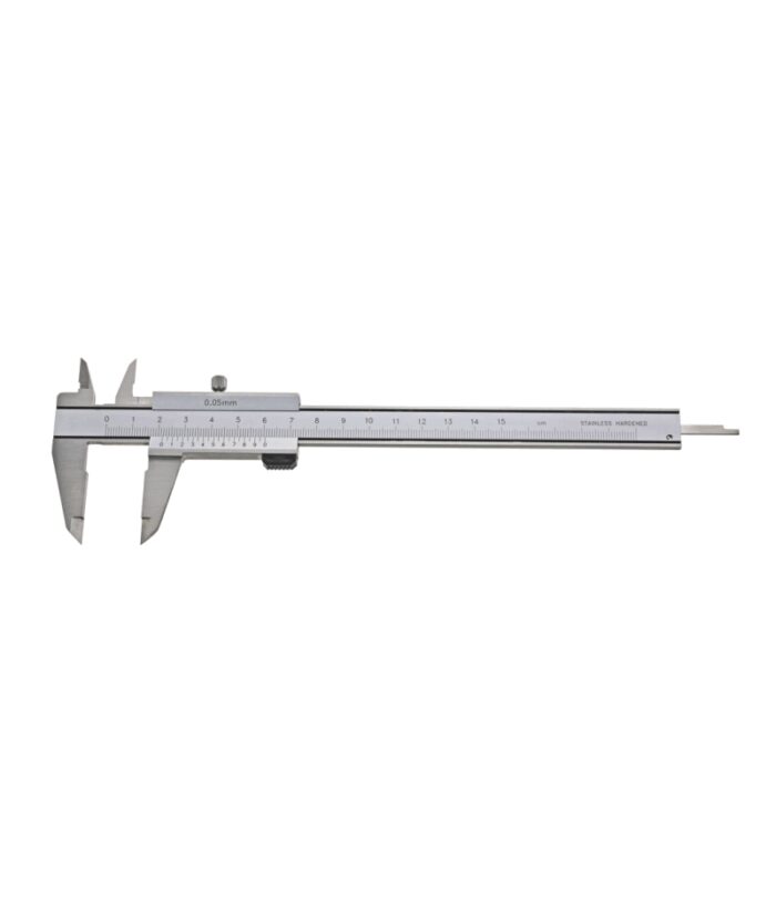 MIB német gyártmányú rozsdamentes, analóg tolómérő a precíz, pontos mérésekhez. Parallax mentes. Csavarrögzítéses, edzett acélból készült, matt-krómozott. Négyirányú mérési lehetőség. DIN 862 szabvány. Mérőpofa hátoldalán csavartáblázat matricázva. Mm mérési lehetőség.