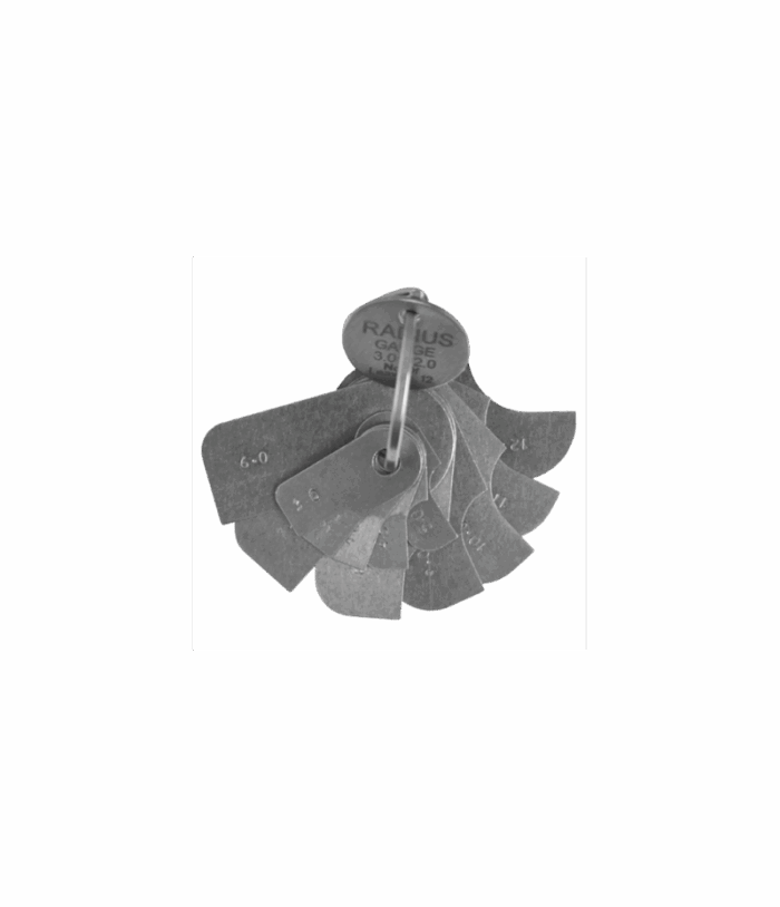 MIB Rádiusz (radius) sablon készlet, 12 részes, karikagyűrűn. Méretek: 3,0-3,5-4,0-4,5-5,0-6,0-7,0-8,0-9,0-10,0-11,0-12,0 mm.
