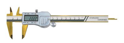 Titán bevonatos digitális tolómérő, limit nélküli beállítási sebességgel. Edzett, rozsdamentes acélból. Négyirányú mérési lehetőség. Olvasás 0.01 mm/0.0005″. DIN 862 szabvány szerint gyártva. Pontosság 0.03 mm. Műanyag dobozban szállítva. RB5 adatkimenettel ellátva. Fémházas. Tartozék görgővel (nélküle is használható). HOLD funkció: Lehetővé teszi a kijelzett mérési érték megtartását az opcionális Adatmegtartás (Data Hold) egység segítségével. (Ez a funkció nem használható az adatátviteli funkcióval együtt.)