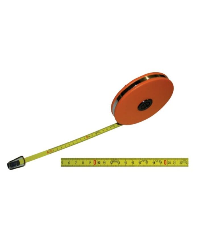 MIB német gyártmányú acél sárga lakkozott mérőszalag a precíz pontos mérésekhez. PVC bevonatú acél tokos kivitel. 13 mm széles szalag. EC II. (kettes) pontossági osztály.