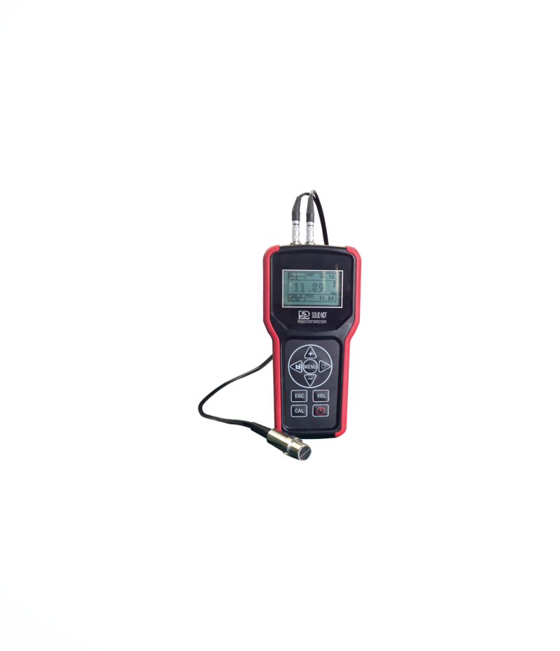 MIB ultrahangos vastagságmérő, 0,75-400 mm, 0,01 leolvasás 100 mm-ig, 0.1 mm 100 mm felett. Vastagság ultrahang profil segítségével. Külső szondával. Alkalmazható fém, műanyag, üveg vagy üvegszál vastagságmérésére. Terméktől függően a mérés bevonatos és festett munkadaraboknál is lehetséges. Automatikus nullpont beállítás. Állítható hangsebesség 1,000 – 9,999 m/s. Automata sebességútvonal korrekció. Magasság pontosság ± (0.5 % H + 0.01 mm). Kábel: ø 10 mm, 5 MHz, 0,75 mm lemezmérettől, csöveknél pedig 20 mm x 3 mm-től. Elem: 4 x AAA (02027240) és 3 x AA (02027241). Dobozban szállítva: egy darab eszköz és egy darab szonda.