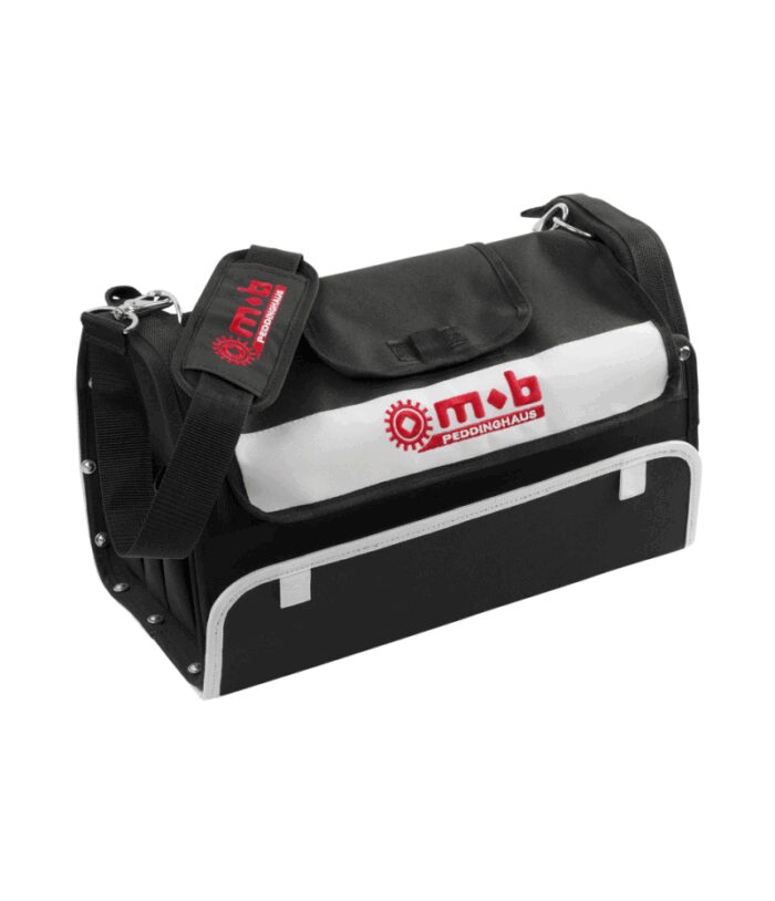 MOB „Easy Bag” textil szerszámos táska, műanyag szortimenterekkel, tépőzáras kivitel, 12 literes, 420mm x 190mm x 240mm, szerszámok nélkül.