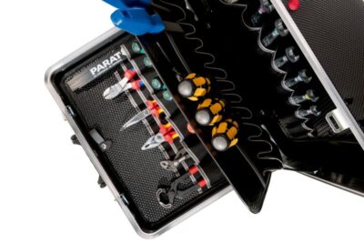 - alsó tálca magassága 88 mm, flexibilis elválasztókkal szegmensekre osztható; fedő szerszámos panel 10 zsebbel