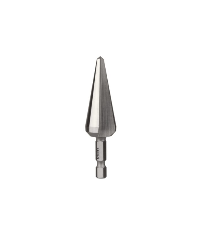 Ruko Bit befogású, 1/4″, kúpos lemezfúró, HSS, köszörült keresztköszörüléssel, jobbos, C forma, csúcsszög 118°, kúpszög 20-30°, tűrés gyári szabvány szerint, Ø 5 – 20 mm, 101049H