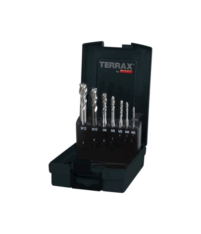 50.093 Ft (39.443 Ft + áfa)RUKO HSS csavart hornyú gépi menetfúró HSSE Co5, 7 részes készlet, M3-M12, A245058ETX