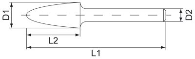 Ruko keményfém turbómaró, legömbölyített végű ívelt, F alak RBF, DIN8033, TC, CT4 keresztfogazás, KVZ4, Ø 6 szárátmérő x 6 x 18 x 58 mm, 116030