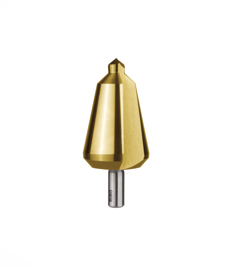 Ruko Kúpos lemezfúró, HSS-TiN, köszörült keresztköszörüléssel, jobbos, C forma, csúcsszög 118°, kúpszög 20-30°, tűrés gyári szabvány szerint, Ø 24 – 40 mm, 101004T