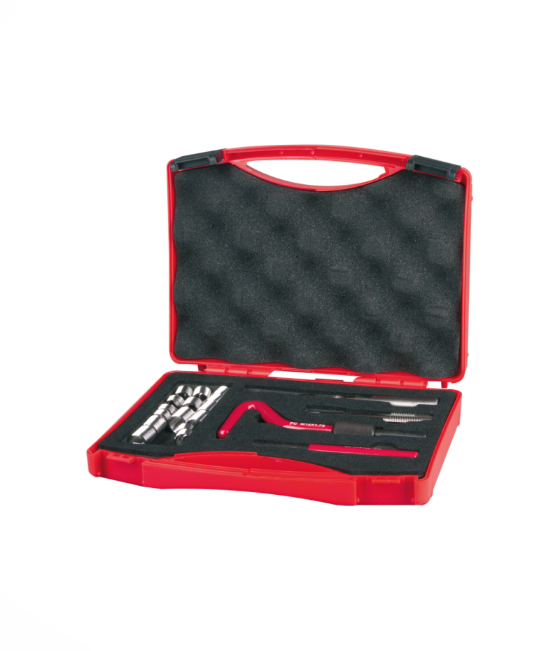 A ProCoil menetjavító készletei költségtakarékos, egyszerű és gyors megoldást kínálnak a sérült és elhasználódott menetek javítására. A szerszámok nemesített acél anyaga kiváló minőségű, a hőmérsékleti hatásoknak és a korróziónak ellenálló belső menetet hoz létre. A ProCoil készletek további előnye az egyszerű és gyors felszerelhetőség. A készletek sikerrel használhatók a gép- és berendezésgyártásban, a járműiparban, az elektrotechnikában, erőművekben, valamint a hajóépítésben. A készlet a javításon kívül a selejtek korrekciójára is alkalmas, ami tovább növeli az ipari felhasználás lehetőségeit. Csomagolási egység: műanyag táskában. 1 db spirálfúró, Ø 14,5 mm; + 1 db kézi menetfúró, DIN 352, gyorsacél HSS M 14 x 2,0; + 1 db beszerelő szerszám M 14; + 1 db csaptörő Ø 10,0 mm; + 5-5 db menetbetét Magasság = 1,0 x Ø / Magasság = 1,5 x Ø / Magasság = 2,0 x Ø