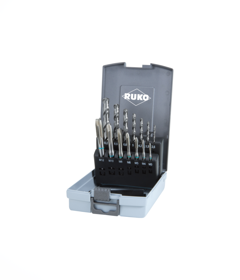 5.659 Ft (4.456 Ft + áfa)RUKO HSS csavart hornyú gépi menetfúró HSSE Co5, 7 részes készlet, M3-M12, A245058ETX