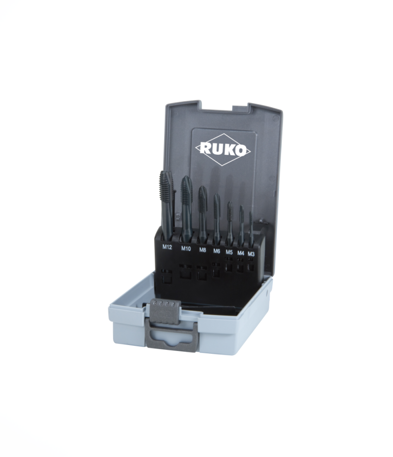 Ruko Metrikus gépi menetfúró 7 részes készlet megerősített négyszögszárral, átmenő furathoz, B alak, M, DIN 371/376, HSSE-Co5, M3-M4-M5-M6-M8-M10-M12, 245063RO