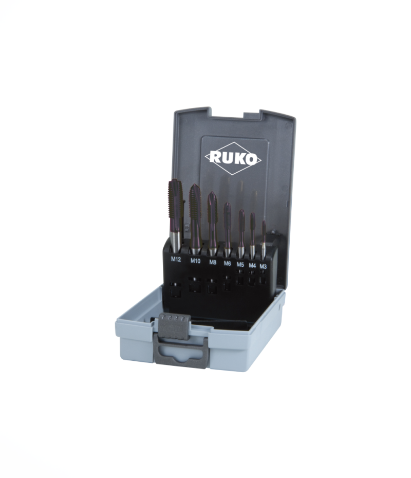 50.093 Ft (39.443 Ft + áfa)RUKO HSS csavart hornyú gépi menetfúró HSSE Co5, 7 részes készlet, M3-M12, A245058ETX