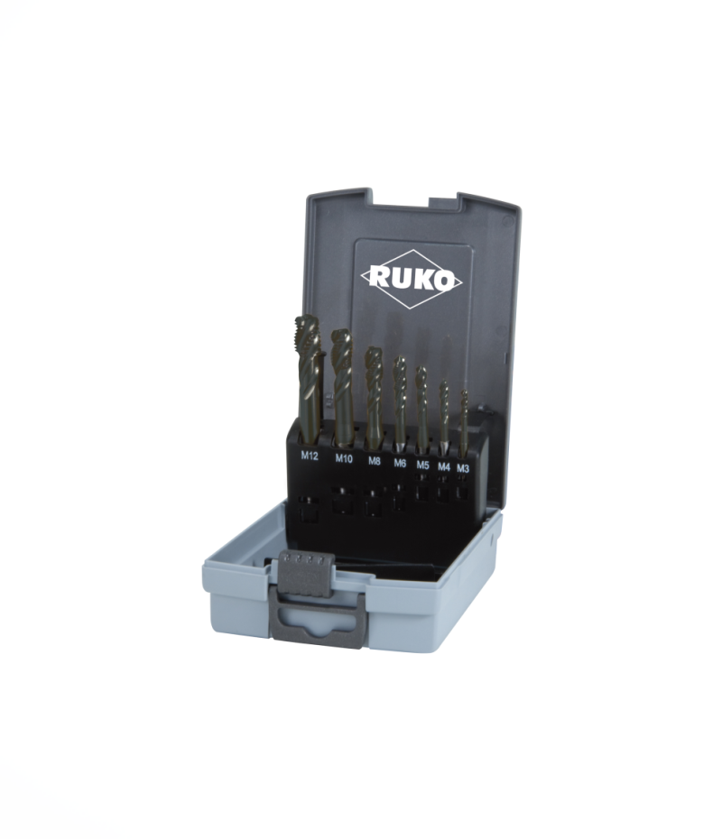37.257 Ft (29.336 Ft + áfa)RUKO HSS csavart hornyú gépi menetfúró 7 részes készlet, M3-M12, A245058TX