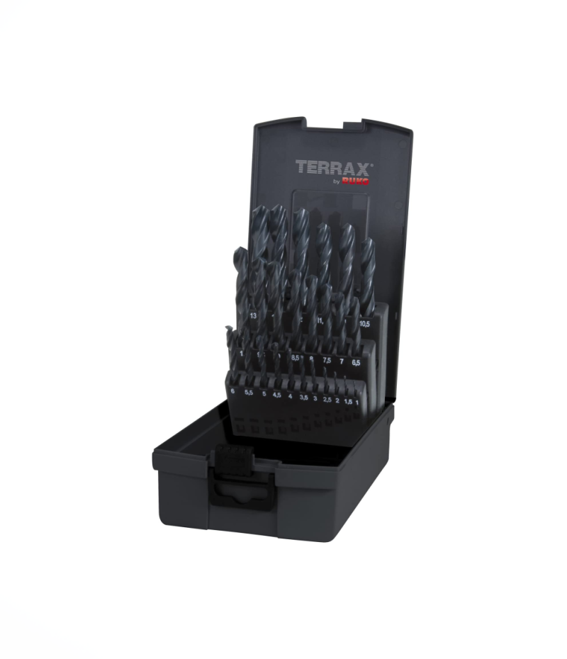 Ruko Terrax csigafúró (fúrószár) készlet, DIN 338, N típus, HSS-R, 25 részes, Ø 1 – 13 mm x 0.5 mm, A205211RO