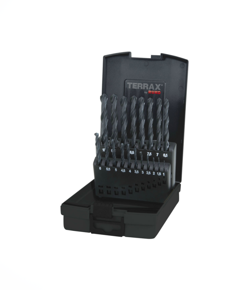 Ruko Terrax csigafúró (fúrószár) készlet, DIN 338, N típus, HSS-R, 19 részes, Ø 1 – 10 mm x 0.5 mm, A205210RO