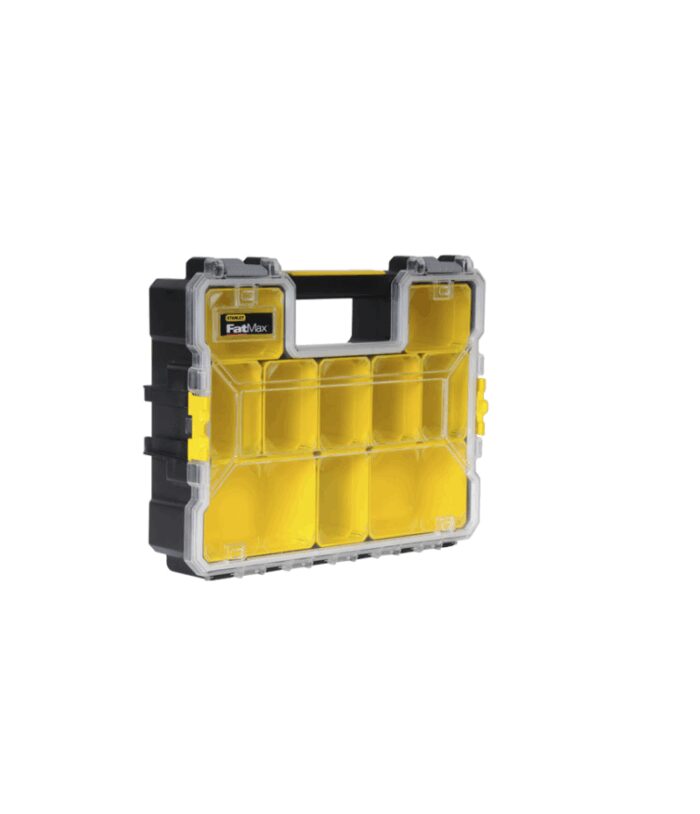 Stanley FatMax Pro műanyagcsatos szortimenter, törhetetlen átlátszó fedélrész, kivehető tároló dobozok, 44,6cm x 11,6cm x 35,7cm, 1-97-521