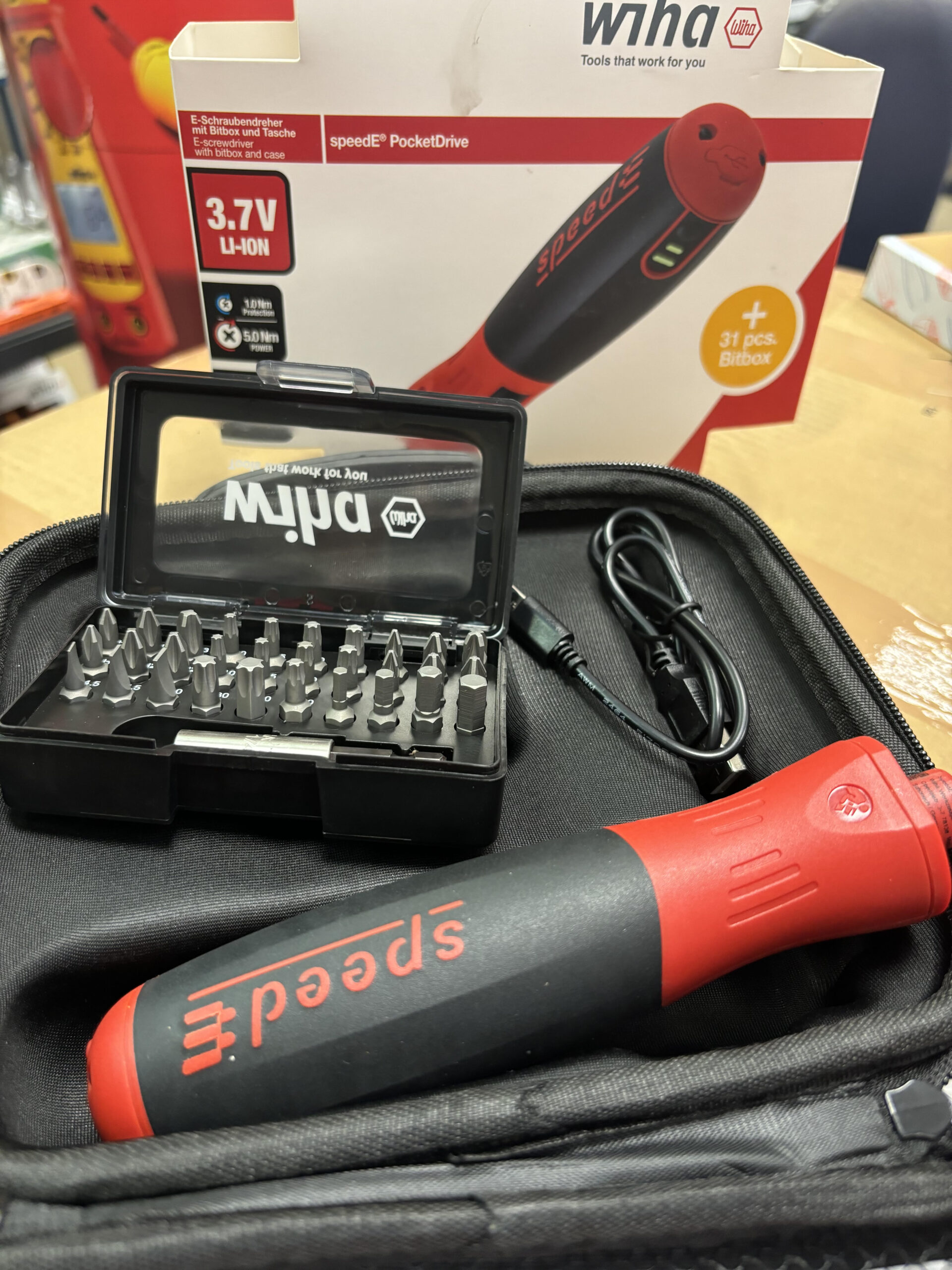 Wiha 45791 SpeedE® POCKETDRIVE elektromos csavarhúzó, csavarkötésekhez maximum 12Nm-ig, 30 darab behajtóheggyel (bit), USB-töltővel, textil táskában.