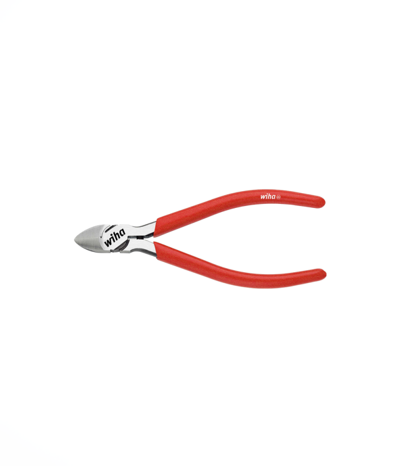 Wiha Classic műszerész oldalcsípő (oldalvágó) fogó, nyitórugóval, fazetta nélkül, DIN ISO 5749, egy komponensű nyéllel. Puha és közepesen kemény huzalok csaknem színelő vágásához.