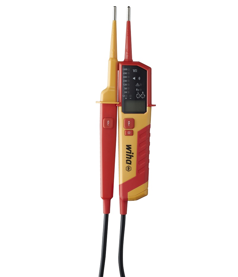 A beépített zseblámpa funkciónak köszönhetően a Wiha feszültségmérő optimális fényviszonyokat kínál még rosszul megvilágított munkakörnyezetben is. A vizsgálóhegyek markolatain található nyomógombok egyidejű megnyomása lehetővé teszi a Fi relé működésének tesztelését egy terhelés bekapcsolásával.