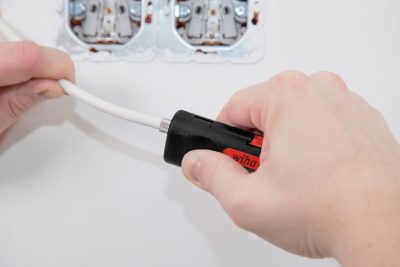 Számos lépés szükséges a csavaros F-csatlakozóval rendelkező koaxiális kábel feldolgozásakor. A Wiha csupaszító és szerelőszerszáma minden szükséges funkciót biztosít a felhasználó számára egyetlen kompakt szerszámban. A 6-8 mm külső átmérőjű koaxiális kábelek méretpontos lecsupaszítása csupán egyetlen lépésben elvégezhető. A többszöri forgómozgással a csupaszítás gyorsan és helytakarékosan elvégezhető a két egymással szemben elhelyezkedő késsel. A már beállított eltolási méretet a hagyományos csavaros F-csatlakozókhoz tervezték.