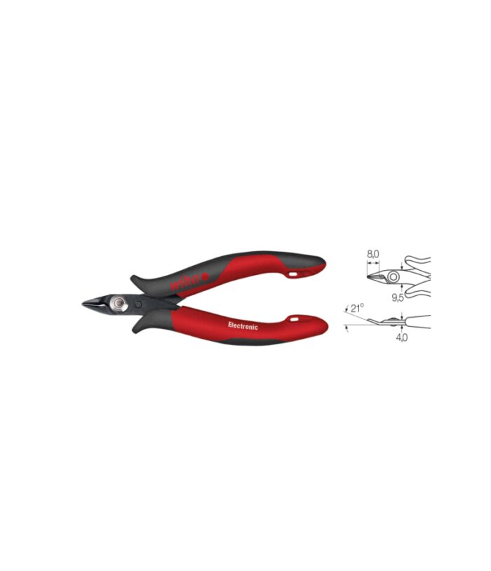 Wiha Műszerész oldalcsípő (oldalvágó) fogó, 0,8 mm puha huzalok vágására, nagyon keskeny, hegyes fejjel fazetta nélkül, 8 mm-es, 21°-ban döntött vágóéllel. C70-es, speciális szerszámacélból készült. Puha huzalok tökélesen vágására nehezen hozzáférhető helyeken az elektronikai iparban. Nyitórugóval. Csúszásmentes, puha, gumiból készült nyelek – finoman illeszkedik a kézbe és kisebb erőkifejtéssel is hatékony vágást biztosít.