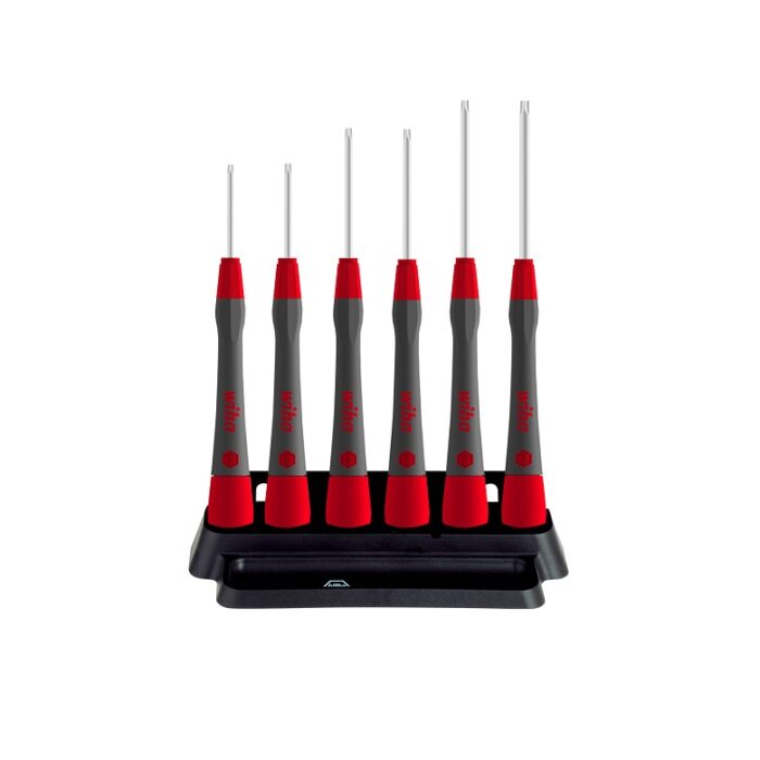 Wiha PicoFinish műszerész csavarhúzó készlet tartóval, Torx, 6 részes, T4 x 40; T5 x 40; T6 x 40; T7 x 40; T8 x 40; T9 x 50, 42997