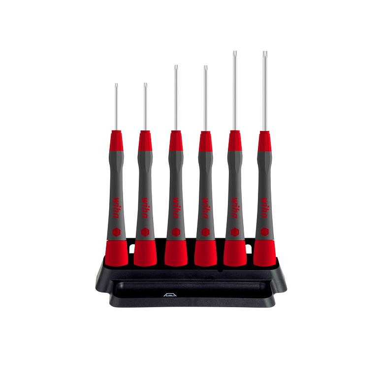 - A készlet 6 PicoFinish® finomcsavarhúzót és egy tartót tartalmaz.