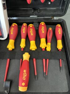 - A készletben lévő szerszámok többsége a VDE által tanúsított szigetelésnek köszönhetően további biztonságot nyújt a feszültség alatt álló alkatrészeknél végzett munkák során
